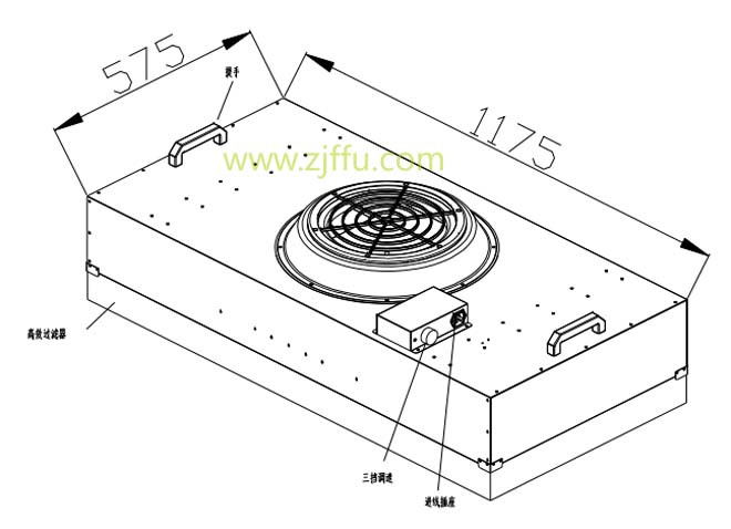 1、兩種型號:ZJ-400-1175*575標準FFU圖紙|標準FFU設計圖,區別是頂部進風口一個為圓形,一個為方形,此產品一般有現貨,無供貨期。