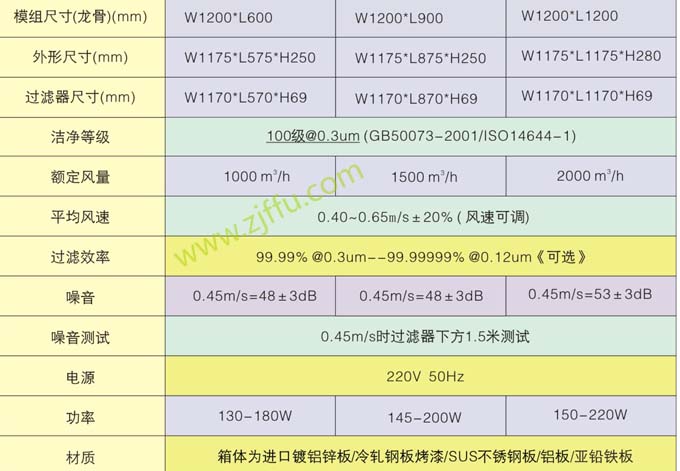 FFU風量有多種,例如: 1、575-575-250 風量500m3/h。 2、615-615-250 風量600-800m3/h。 3、920-615-250 風量1000m3/h。 4、1175-575-250 風量1000-1200m3/h。 5、1225-615-250 風量1200-1500m3/h。 6、1175-1175-290 風量2000- …