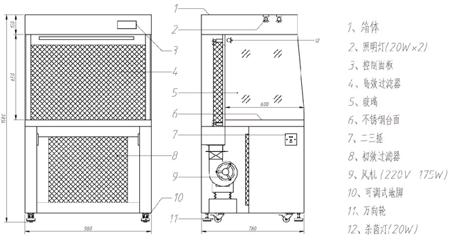 4、水平流型,開(kāi)放臺(tái)式,操作方便。