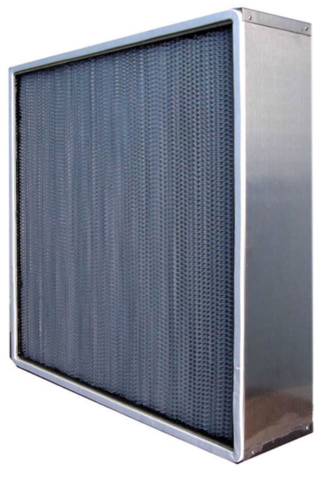 耐高濕高效過濾器以叫鋁隔板高效過濾器,耐高濕有隔板高效過濾器采用隔板式設計,波紋形隔板可以精確地保持褶層間距、在最小阻力下,最大限度地利用濾料。鋁隔板高效過濾器濾材兩面180褶翻折形成鍥形褶層,濾料折彎時有兩道壓痕,使鋁隔板高效過濾器濾料在隔板的尾端開成鍥形盒式褶層,鍥形盒式褶層可以防止濾料破損。在腐蝕性環境中,可使用鍍乙烯隔板,捕捉0.3um粒子效率99. …