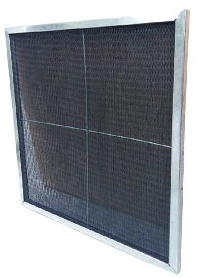 1.采用初效無紡布平鋪于框架內,濾料雙面金屬網固定。