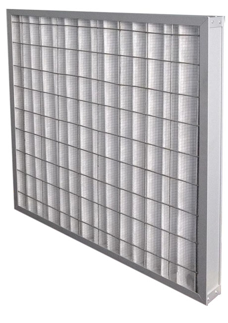 過濾材料是以折疊形式裝入高強度摸且硬紙板內,迎風面積增大,流入的空氣中的塵埃粒子被過濾材料有效阻擋在摺與摺之間。潔凈空氣從另一面均勻流出。因此氣流通過過濾網是平穩和均勻的。視過濾濾料不同。它所攔截粒子的粒經從0.5um到5um而不同。過濾效率也不同。