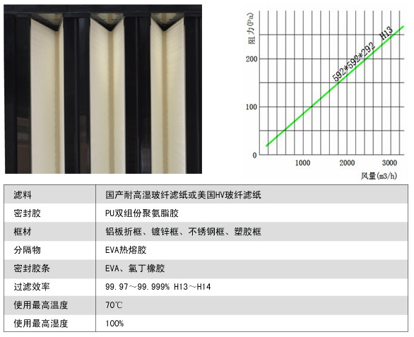 HV系列濾料是采用超細玻璃纖維制成的高密度紙,浦料褶登以盡量擴大派料的有效過濾面積,從而降低濾料的濾速,這對高效過濾器是相當重要的.進口H&V3波纖濾料具有防水性和阻燃性可適用于1000° F(538℃)的高溫,閉孔EVA密封墊片可用干氣密性密封,防止過濾器側漏,標準為18mm寬6mm厚。也可采用硅質密封墊片,無隔板高效可使用聚氨酸發泡整體形成,發泡機走XY軸,自動運行,密封效果相當好。